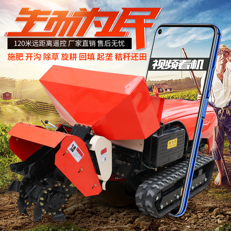 履带式微耕机多功能田园管理农用机械旋耕开沟小型遥控耕地机起垄