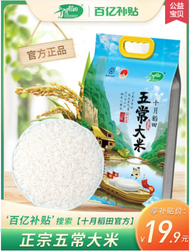 【百亿补贴】十月稻田 五常大米官方旗舰店东北农家稻花香2号5斤